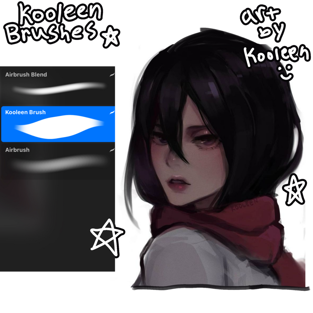 Brushes that replicate the Kooleen brushes she uses. art by kooleen